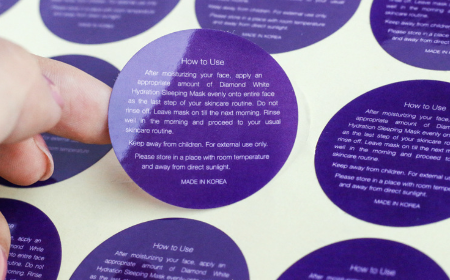 Usage: Information label for toilet products, cosmetics, and other extruded packaging.